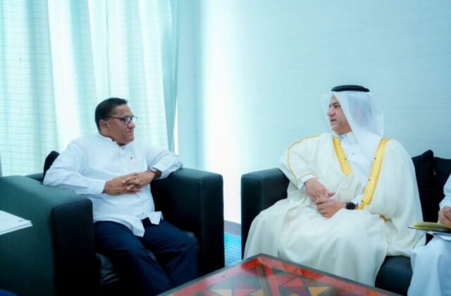 ශ්රී ලංකාවේ කටාර් තානාපති අතිගරු ජාසිම් බින් ජාබර් ජේ.බී. අල්-සොරූර් මහතා අද සමුගැනීමේ හමුවක් පැවැත්වීය.ශ්රී ලංකාව සහ කටාර් රාජ්යය අතර ද්විපාර්ශ්වික සබඳතා තවදුරටත් වැඩිදියුණු කිරීම සඳහා ඉවත්ව යන තානාපතිවරයාගේ විශිෂ්ට කාර්යභාරය පිළිබඳව මම මගේ අවංක කෘතඥතාව පළ කළ අතර රාජ්ය තාන්ත්රික බලකායේ පීඨාධිපතිවරයා ලෙස ඔහුගේ කැපවූ දායකත්වයට ප්රශංසා කළෙමි. විදේශ රැකියා, වෙළඳාම, සංචාරක ව්යාපාරය සහ ආයෝජන කෙරෙහි විශේෂ අවධානයක් යොමු කරමින් අන්යෝන්ය වශයෙන් උනන්දුවක් දක්වන වර්තමාන ගැටළු පිළිබඳව ද අපි අදහස් හුවමාරු කර ගත්තෙමු.