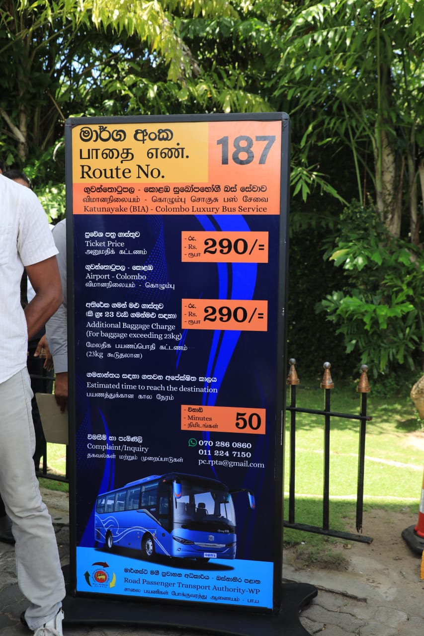 *කටුනායක ගුවන්තොටුපොලට පැමිණෙන මගී ජනතාවට ඊයේ සිට 24 × 7 මගී බස් රථ සේවාවක් ඇරඹේ*…ගුවන්තොටුපොළට පැමිණෙන ජනතාව සඳහා පොදු ප්‍රවාහන සේවයක අවශ්‍යතාවය සපුරාලීම සඳහා වූ මූලික පියවරක් ලෙස අද දින සිට ගුවන්තොටුපොළ තුල සිට කොළඹ දක්වා පෞද්ගලික බස් රථ සේවයක් ඇරඹේ. මින් පෙර ඇවරියවත්ත බස් නැවතුම්පොළින් ගමන් අරඹන ලද මෙම බස් රථය අද දින සිට ගුවන්තොටුපොළින් ගමන් ඇරඹේ. මෙම සේවාව 24 × 7 සේවාවක් ලෙස ක්‍රියාත්මක වීමට නියමිතය. දැනට පුද්ගලික අංශය සතු බස් රථ ධාවනයේ යෙදවීමට නියමිත අතර ඉදිරියේ දී ගමන් මලු රැගෙන යාමේ පහසුව සහිත බස් රථ මෙම ‍සේවය සඳහා යෙදවීමට බලාපොරොත්තු වන බව නියෝජ්‍ය අමාත්‍ය ජනිත රුවන් කොඩිතුවක්කු මහතා පවසා සිටින ලදී. මෙම සේවාව සපයන බස් රථ වල සේවය කරනු ලබන සේවක මහතුන් හට ජනතා හිතවාදී සේවයක් සැපයීම සඳහා වූ නිසි පුහුණුවක් ලබා දීමෙන් පසුව මෙම සේවයේ යොදවනු ලැබේ. රුපියල් 290 ක් වැනි මුදලකට කටුනායක සිට කොළඹ බලා සුවපහසුවෙන් පැමිණීමේ අවස්ථාව අද සිට මගී ජනතාවට හිමි වේ. ගුවන්තොටු‍පොළ අධිකාරිය, මාර්ගස්ථ මගී ප්‍රවාහන අධිකාරිය සහ රජයේ මඟ පෙන්වීම යටතේ මෙම ව්‍යාපෘතිය සාර්ථකව ආරම්භ කිරීමට හැකි විය. -මාධ්‍ය අංශයප්‍රවාහන, මහාමාර්ග, වරාය හා සිවිල් ගුවන්සේවා අමාත්‍යංශය