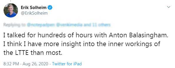 ඔහු වැඩිදුරටත් සඳහන් කර ඇත්තේ, LTTE සංවිධානයේ න්යායචාර්යවරයා ලෙස කටයුතු කළ ඇන්ටන් බාලසිංහම් එය තමන් සමග පැවසූ බවය.