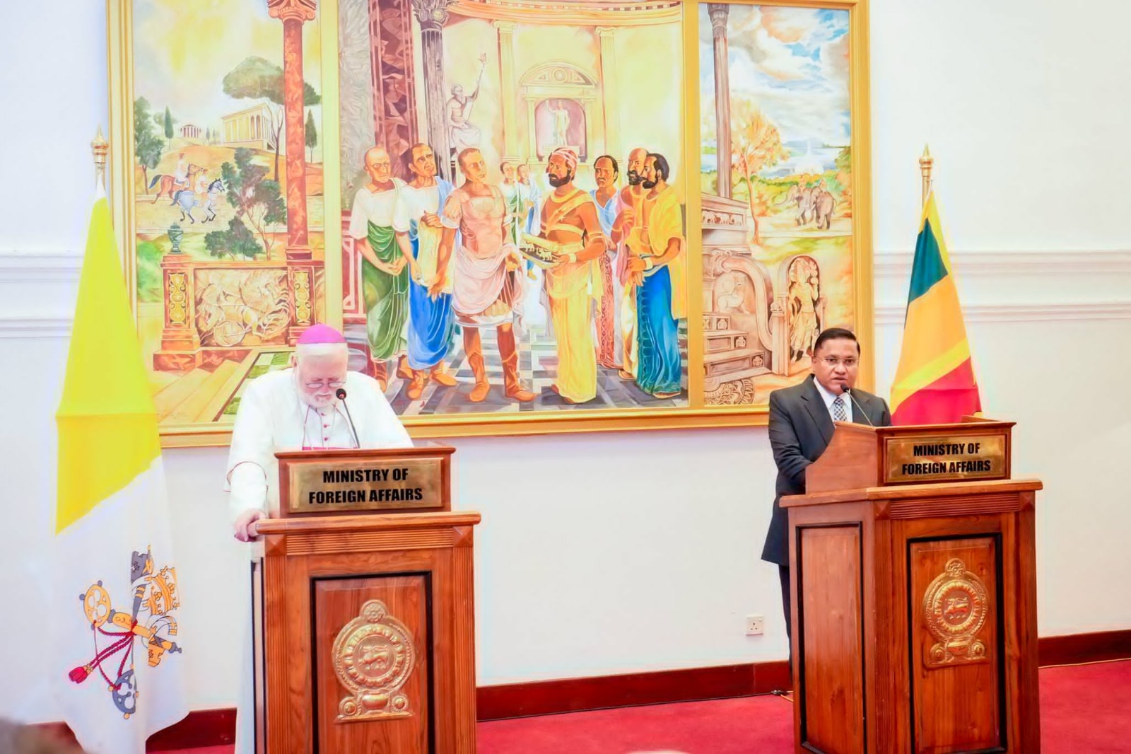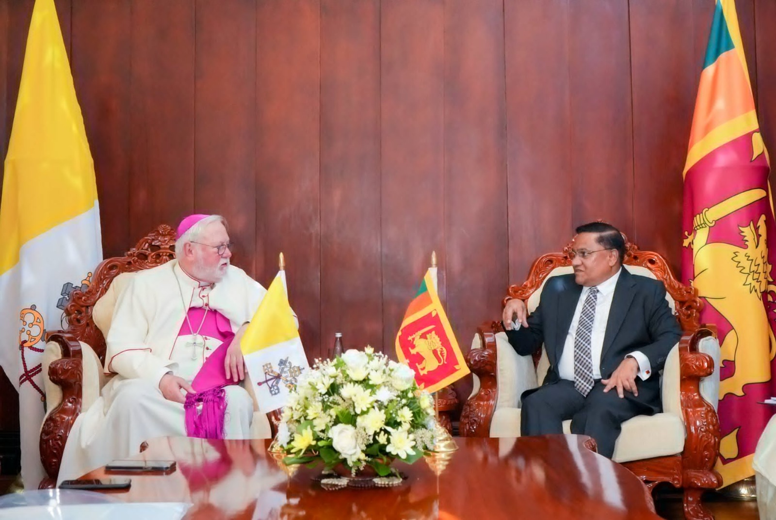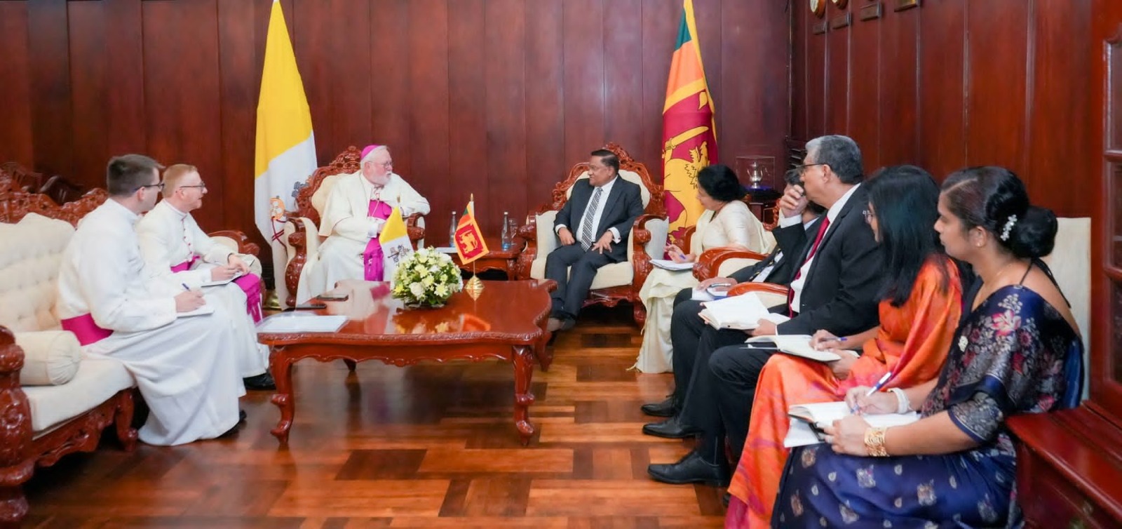 වතිකානු ශුද්ධාසනයේ රාජ්‍යයන් සහ ජාත්‍යන්තර සංවිධාන සමඟ සබඳතා පිළිබඳ ලේකම්, අගරදගුරු පෝල් රිචඩ් ගැලගර් මහතා අද අමාත්‍යාංශයේදී පිළිගැනීමට ලැබීම සතුටට කරුණකි. ශුද්ධාසනයේ අඛණ්ඩ සහයෝගය සඳහා ශ්‍රී ලංකාවේ අවංක කෘතඥතාව පළ කළ අතර, අපගේ හවුල් ඉතිහාසයේ වැදගත් සන්ධිස්ථානයක් වන රාජ්‍ය තාන්ත්‍රික සබඳතාවල 50 වසර සැමරීමට නියමිත මෙම අවස්ථාවේදී, අපගේ ජාතීන් දෙක අතර ශක්තිමත් රාජ්‍ය තාන්ත්‍රික සබඳතා නැවත තහවුරු කළෙමි.